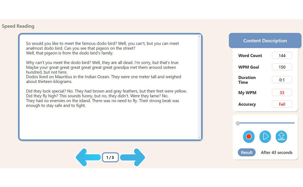 스토리를 읽고 녹음하여 정확한 발음 평가